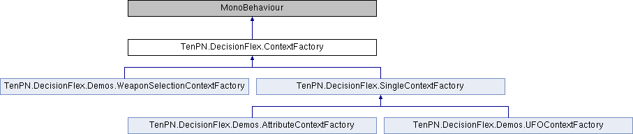 Implemented in TenPN.DecisionFlex.Demos.WeaponSelectionContextFactory, and TenPN.DecisionFlex.SingleContextFactory.